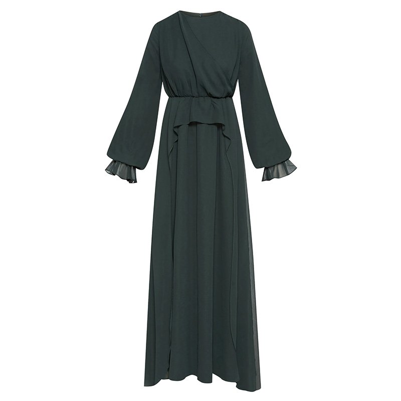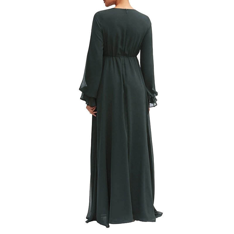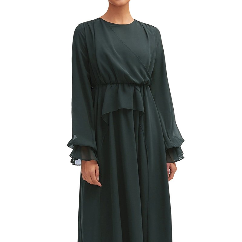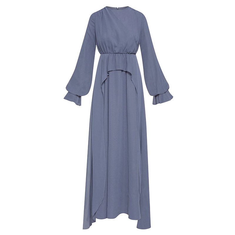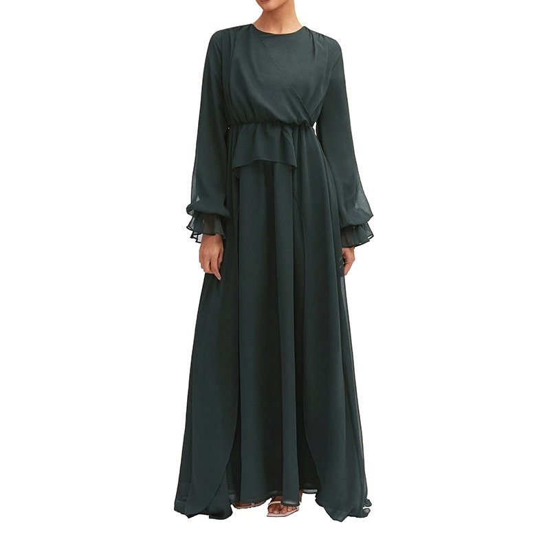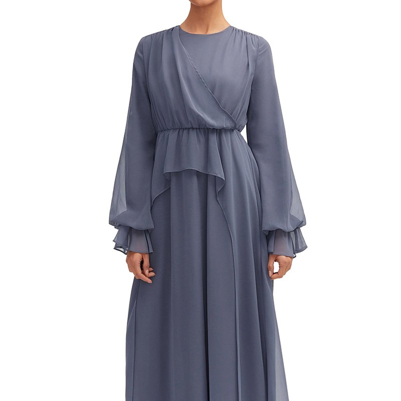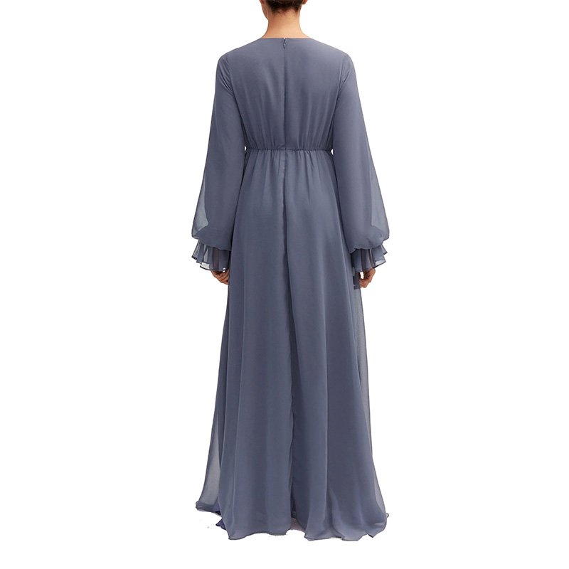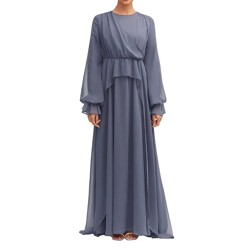 Elegant, breathable, and effortlessly stylish—this chiffon maxi dress blends comfort with timeless sophistication. Made from lightweight fabric and fully lined for everyday wear, it features a flattering layered waist, soft A-line silhouette, and sheer balloon sleeves with delicate ruffle cuffs.