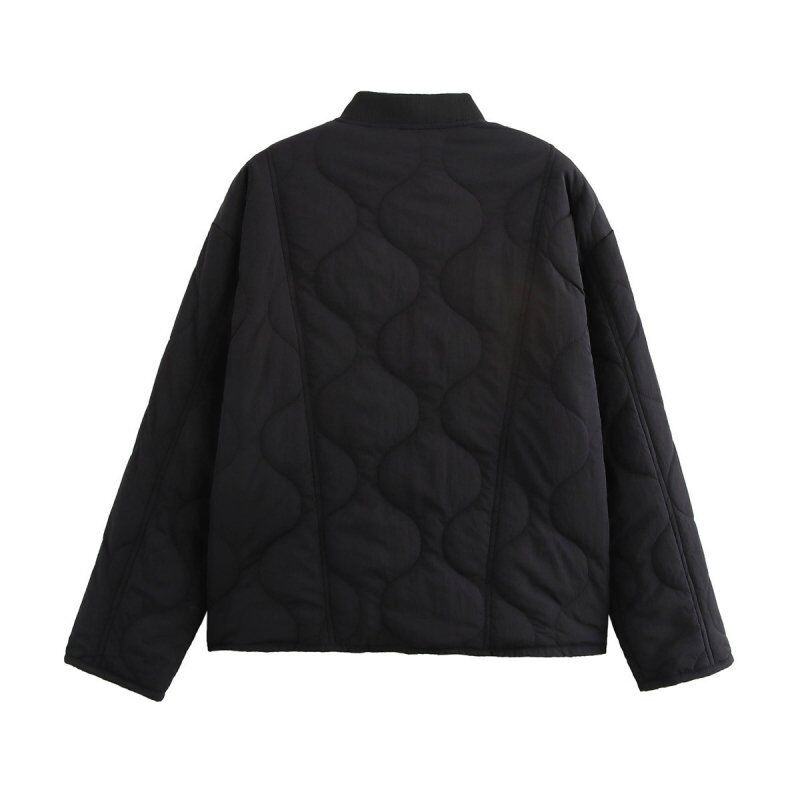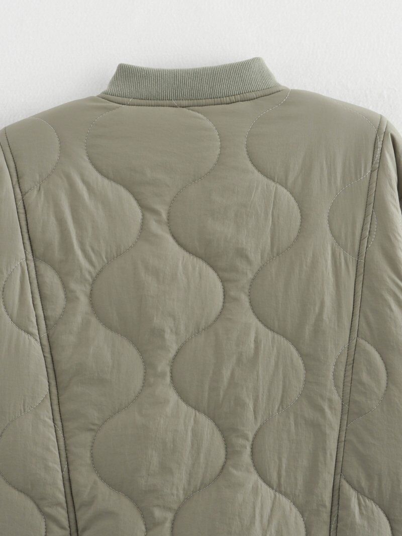 This bomber jacket merges fashion and function seamlessly. Its structured silhouette offers a modern, sporty – chic look, caters to different style preferences. The quilted design ensures warmth, making it a versatile pick for cooler days.