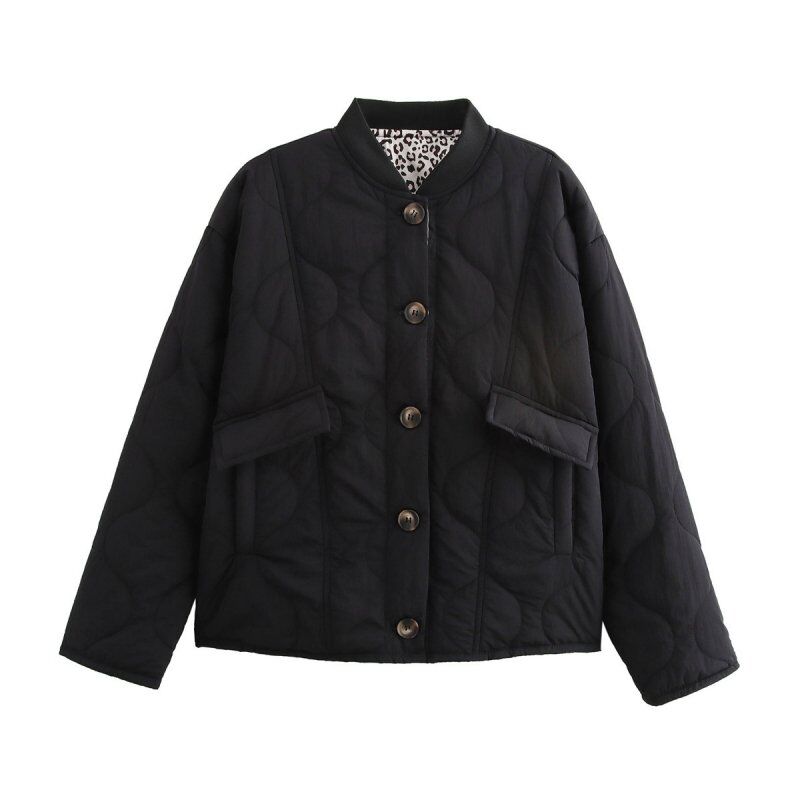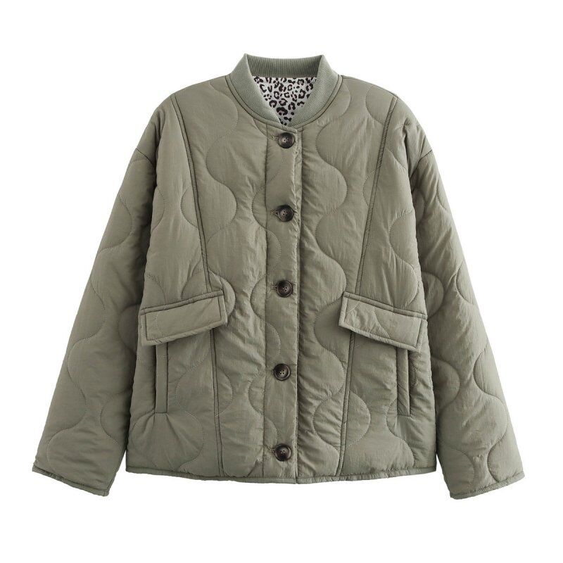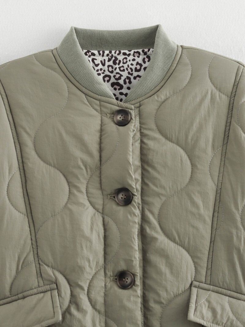 Crafted with attention to detail, it has a bomber – style collar lined with eye – catching leopard print for a bold accent. Long sleeves and a button – front closure provide practicality, and the flap pockets add both style and storage space. The quilted pattern isn’t just decorative – it effectively traps heat for lasting comfort.