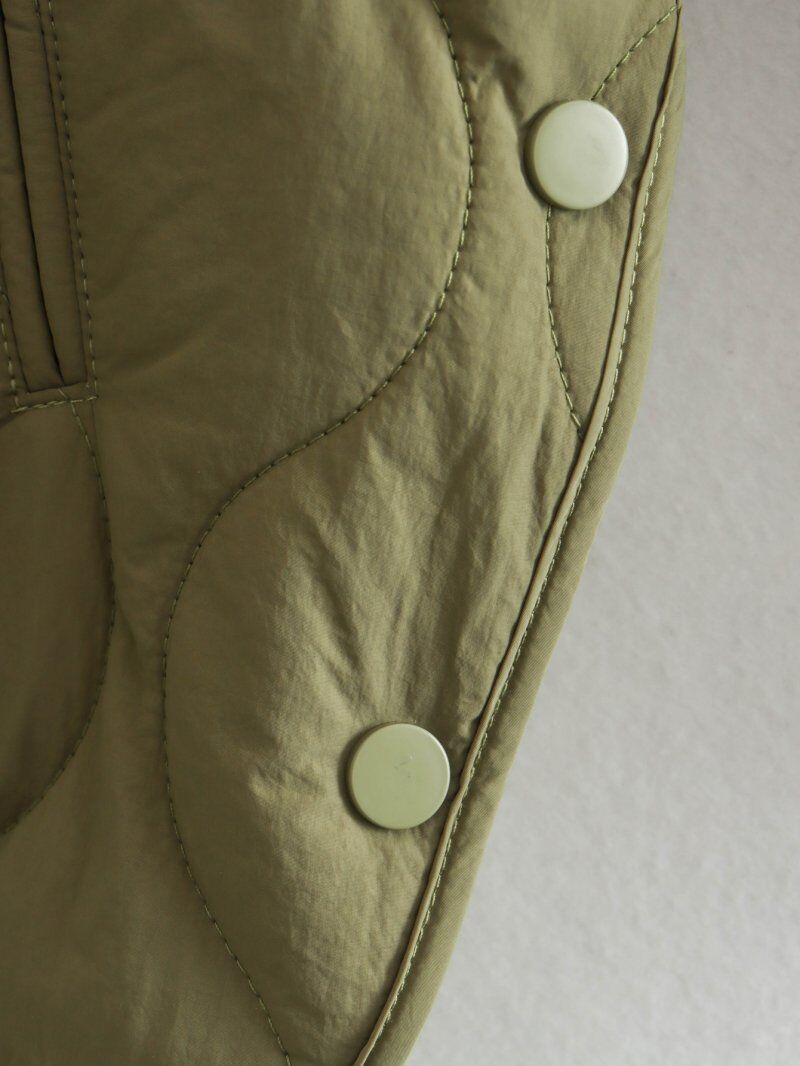 This quilted button – up padded jacket, available in olive green and other colors, blends style and warmth for cold – weather needs.