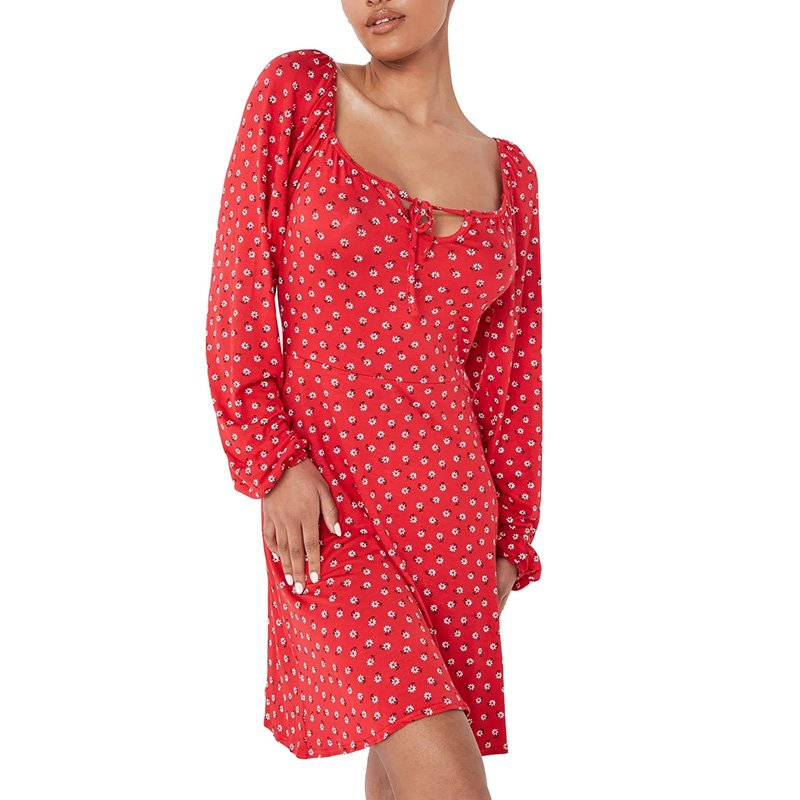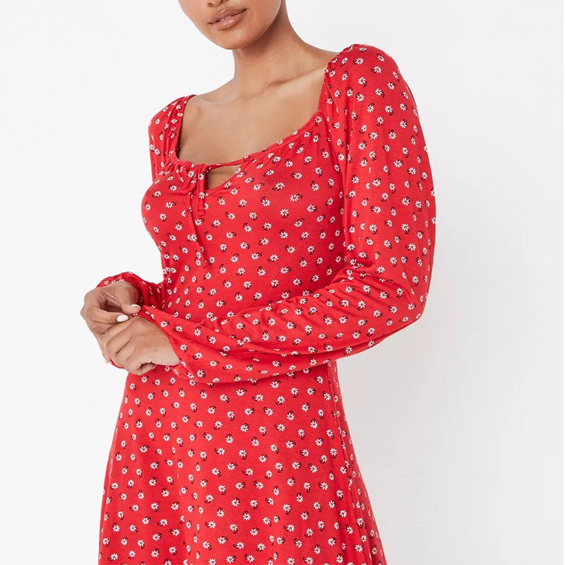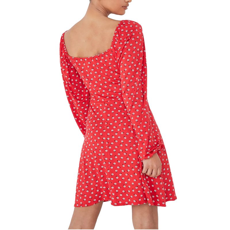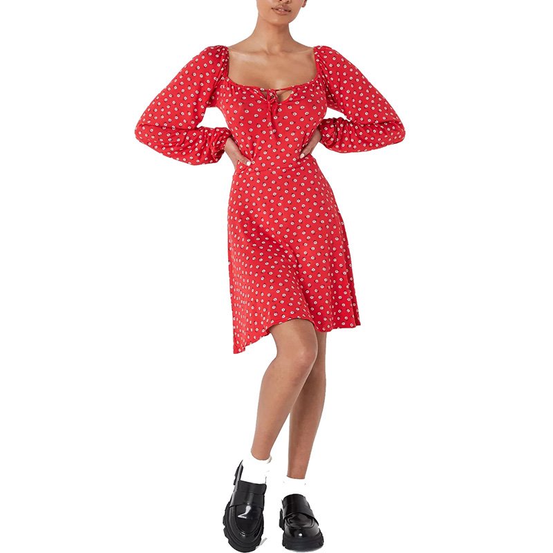 The Red Floral – Print Square – Neck Long – Sleeve Mini Dress is a lively addition to your wardrobe. Its eye – catching red hue and delicate floral pattern create a playful yet feminine look.